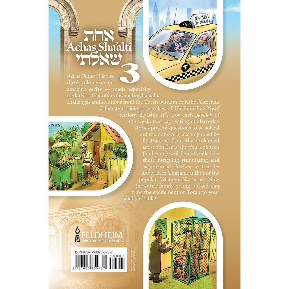 Achas Sha’alti 3 is the third volume in an amazing series — made especially for kids — that offers fascinating halachic challenges and solutions from the Torah wisdom of Rabbi Yitzchak Zilberstein shlita, son-in-law of HaGaon Rav Yosef Shalom Elyashiv zt”l.