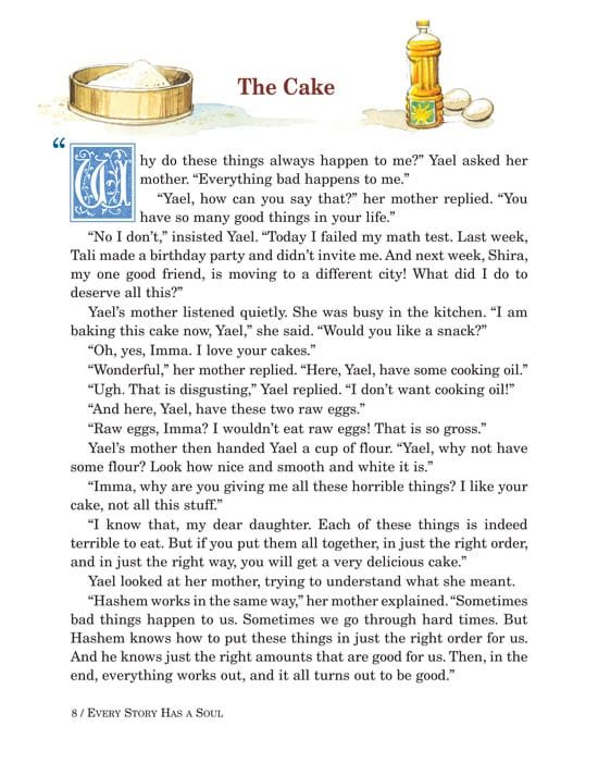 A mysterious visitor appears to nine poor Jews to help complete a Yom Kippur minyan. A voice from thin air warns a teenager how to survive a fatal concentration camp selection. A young girl learns how to really appreciate her difficulties. A dream in the night saves a couple from a doomed sea voyage. These are just four of the twenty moving, illustrated accounts contained in Every Story Has a Soul, by ArtScroll’s celebrated author, Shmuel Blitz. Young readers will thrill to the real life stories of hashgacha pratis, pure faith, and answered prayers.