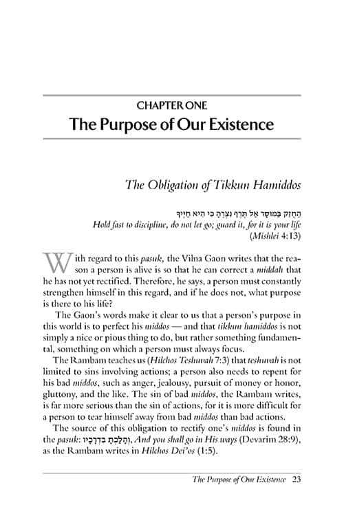 What is the first step in tikkun hamiddos, refining and perfecting our character traits? How do we build our self-worth without becoming haughty? Why is being happy such an important part of improving our middos? Here are the answers to these and so many more vital questions.