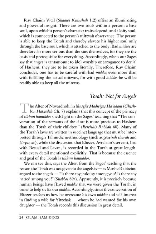 Sefer Olam HaMiddos has become a popular and much-read book through the Torah world – and for good reason. The author, an acclaimed educator, writer, and speaker, combines Torah sources, real-life stories, and deep insight into human nature, to show us the nature of each midah (character trait) and how improving our middos enables us to live full and happy lives.