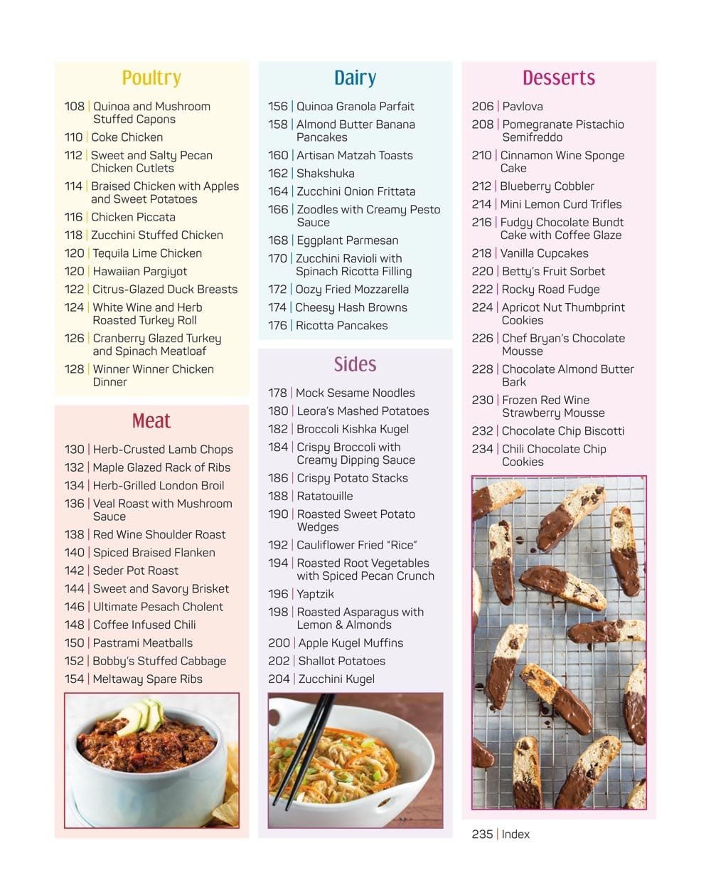 Each of the more than 125 delicious recipes features a beautifully photographed picture by kosher blogger and cookbook author, Miriam Pascal. In addition, Naomi provides numerous Cook’s Tips culled from her years of professional experience. She also includes Freezer Tips, Prep Ahead, How-to information, and recommendations for basic kitchen equipment.