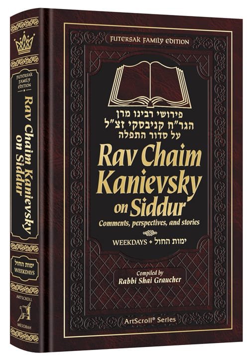 Imagine … davening with Rav Chaim Kanievsky at your side If you ever merited to see Rav Chaim Kanievsky zt’l praying, you felt your own tefillos, your prayers, grow more fervent, more heart-filled, more real. We can no longer see his face shining with holiness – but we can still be inspired, both by his own insights into the words of the Siddur and related stories about Rav Chaim and his illustrious family.