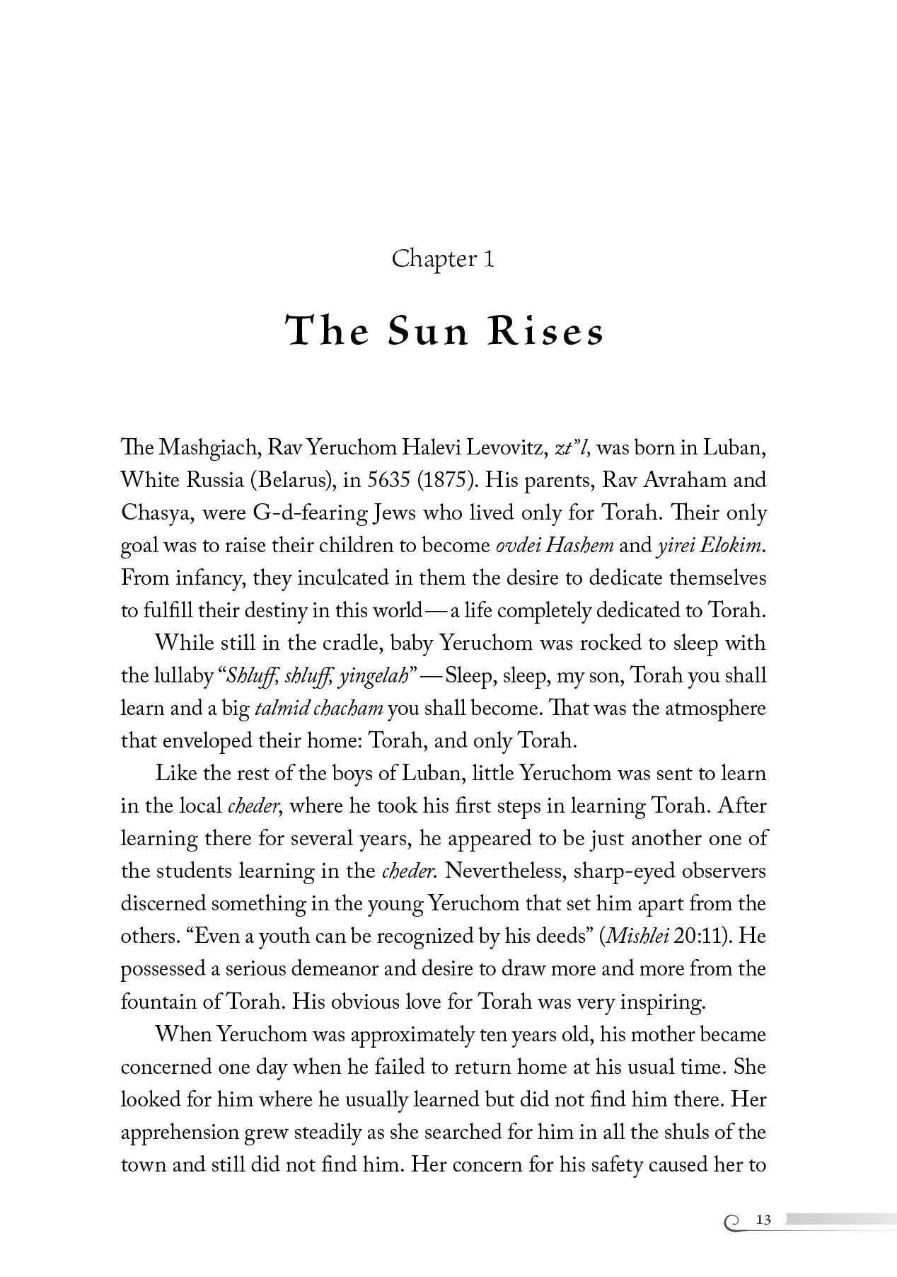 Rav Yeruchom — The Light of the Torah World is more than just a biography. It’s an inspiring, life-altering, and eye-opening book that reveals the heights a human being can strive for, and the eternal guidance of the Mirrer Mashgiach, whose impact on the Torah world is still felt today.
