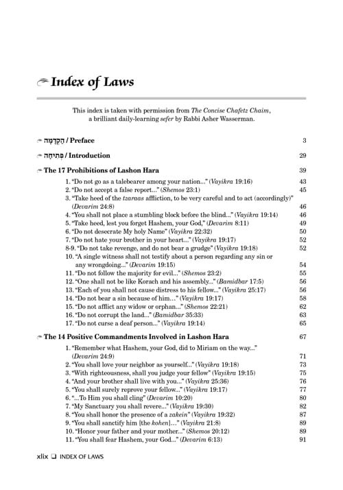 The Laws of Lashon Hara Translated and Elucidated including Practical Illustrations, Notes, and Halachic Indexes