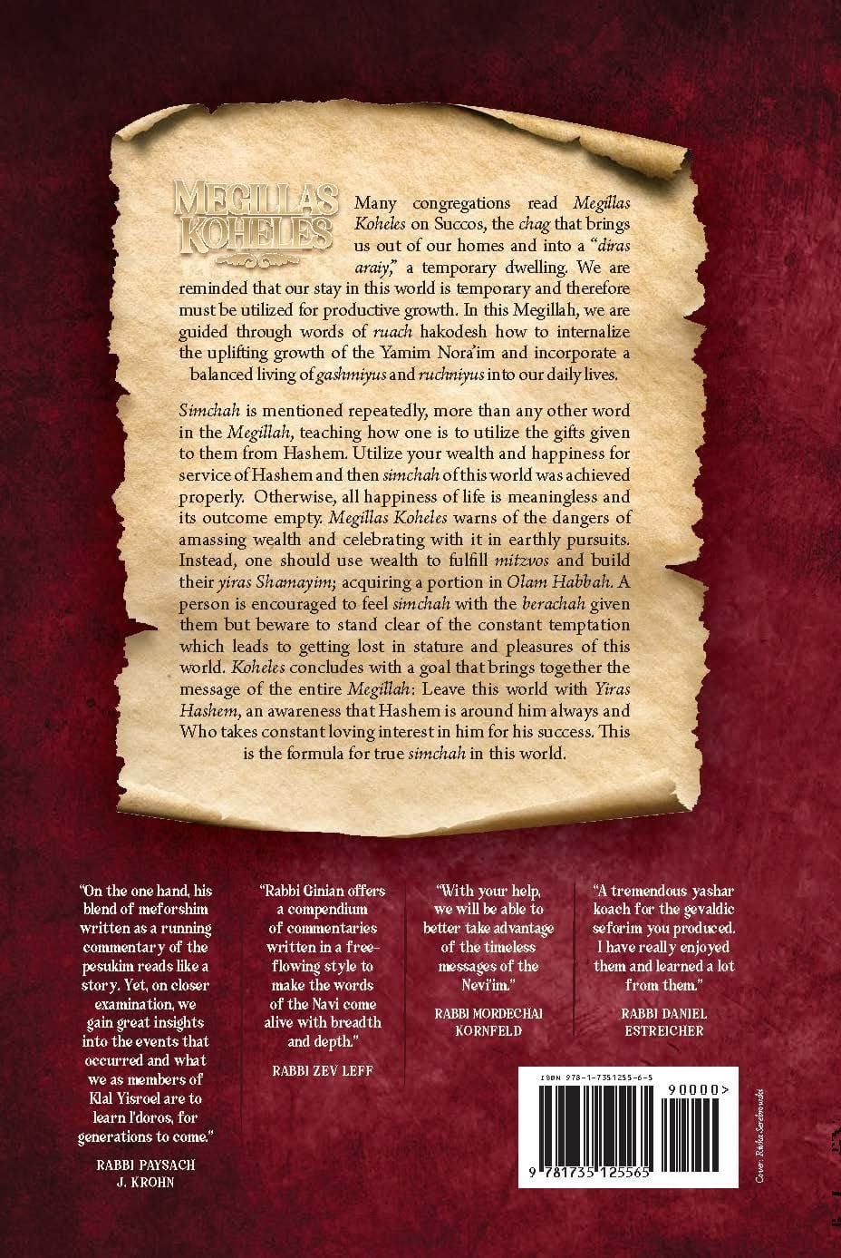 Simchah is mentioned repeatedly, more than any other word in the Megillah, teaching how one is to utilize the gifts given to them from Hashem. Utilize your wealth and happiness for service of Hashem and then simchah of this world was achieved properly. Otherwise, all happiness of life is meaningless and its outcome empty. Megillas Koheles warns of the dangers of amassing wealth and celebrating with it in earthly pursuits.