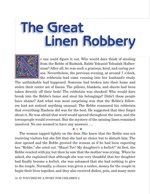 Yes, and Shaya Schonfeld, the talented artist that drew the pictures in Rabbi Spero’s first Touched by a Story for Children, illustrated this book, as well, in stunning, full color.